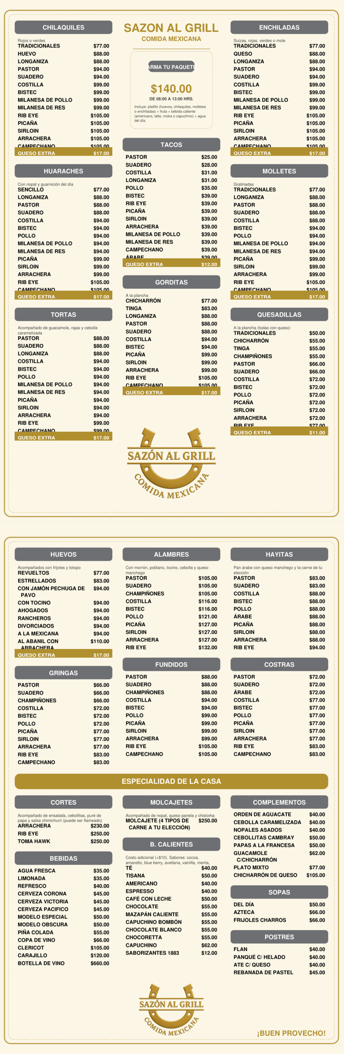 Disfruta de auténtica comida mexicana y cortes.