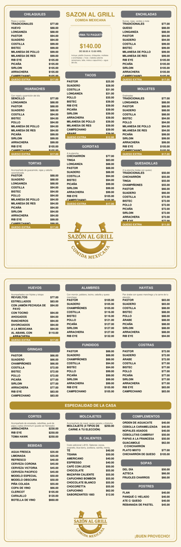 Asegura tu mesa en Sazón al Grill y disfruta de auténtica comida mexicana.